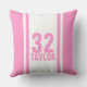 Eenvoudig en klassiek Pink & White gestreept Monogramed en genummerd Sports Jersey Sierkussen. Geweldig voor racers, basketbalspelers, honkbalspelers, hockeyspelers, Football-spelers of een andere atleet. Pas dit aan met uw nummer en naam of de naam en het nummer van uw favoriete sportspeler.