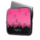 Dit abstracte aanpasbare sleeve heeft enkele zwarte afgeronde vierkanten die op een roze verlopende achtergrond drijven. Wat is er aan de hand? Ik weet het niet; het is gewoon gedurfde, kleurrijke kunst! U kunt uw eigen naam toevoegen, die in wit wordt weergegeven met een fancy script.