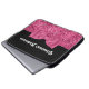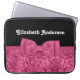 Een chic roze en zwarte 15-inch laptophoes met een feministisch en stijlvol roos floreel patroon en een licht roze lint gebonden aan een schattige boog. Pas deze roze mode voor roze bloem aan door jouw naam toe te voegen. Vlak gedrukt afbeelding, geen echt lint. Origineel Kunstcopyright van ©Tracie Kaska.