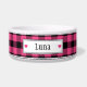 Coördineer je decor en de persoonlijkheid van je hond met hun hondenkom! Girly en zwarte buffalo plaid is de achtergrond voor deze gepersonaliseerde hondenkom. Voeg de naam van uw huisdier toe tussen de kleine hartjes die benadrukken hoeveel uw huisdier geliefd is.