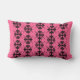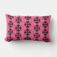 Prachtige roze en zwarte damespatroonkussen. Kies uit het rechthoekige kussen met bolstijl (13 x 21 inch) of de vierkante kussen (20 x 20 inch). Diep roze achtergrond met een fleur de lis geïnspireerd demasontwerp in het zwart. Design van Scarebaby Design, ondersteund door de Zazzle-garantie.