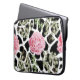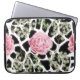 Roze en zwarte Giraffe en bloemen Laptop Sleeve