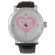Dit polshorloge heeft een vormig roze hart met een wit gewassen centrum. Klik op "Aanpassen" om het roze afbeelding van het vervagen van het hart opnieuw te vergroten/positioneren, de achtergrondkleur te wijzigen en/of de letterstijl, -grootte of -kleur van het horloge te personaliseren. Kies horlogebandstijl en kleur. Geweldig Valentijnsdag cadeau.