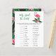 Het baby shower uitnodigingsontwerp heeft roze flamingo met weelderige groene bladschijfjes en tropische hibiscusbloemen. "Aloha Baby". Een tropisch bloemenpatroon met zwarte achtergrondkleur kleedt zich op de achterkant van de kaart.