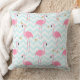 Deze leuke en gooiende kussen hebben een patroon van roze flamingvogels en faux gouden stippen. De afbeeldingen worden op een lichtblauwe en witte gestreepte achtergrond geplaatst. Perfect voor een patio- of zonkamer, met een kleurrijk tropisch gevoel. Beide zijden van de kussen hebben hetzelfde patroon.