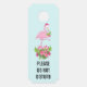 Een deurhanger met een tropische kerstflamingo met een roze santa-hoed. Onder zijn voeten bevindt zich een snoepriet met tropische bloemen en roze bessen. Een hol op zijn borst.