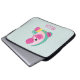 Laptophoes met een schattige illustratie van een roze flamingo met enkele watermeloenen en ananas. Roze en groene kleurenschema. Summery en tropisch. De achtergrond is een bleke groene kleur met witte poka stippen.