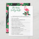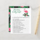 Het baby shower uitnodigingsontwerp heeft roze flamingo met weelderige groene bladschijfjes en tropische hibiscusbloemen. "Aloha Baby". Een tropisch bloemenpatroon met zwarte achtergrondkleur kleedt zich op de achterkant van de kaart.