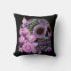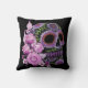 Roze Floral Black Sugar Skull Day of the Dead Kussen