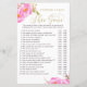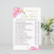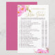 Shoe Game for Wedding or Couples Shower, gepersonaliseerd met de naam van de bruid en de bruid. Roze bloemontwerp met bloei en waterverf bladeren, goudknoppen en elegante kalligrafie. Het ontwerp bevat 20 vragen die u desgewenst kunt bewerken.