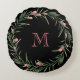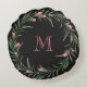 Schattige monogram bloemig met roze knoppen op zwarte achtergrond. ronde kussen sjabloon