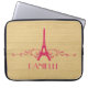 Elegant en chic French Flourish Laptop Sleeve met een nepachtergrond voor houtkorrels en een Eiffel Tower-ontwerp in magenta, voorzien van cascades van stijlvolle zwellen. Dit kleine en trendy ontwerp is gemakkelijk aan te passen met de gepersonaliseerde tekst van uw het kiezen. Klik op "Aanpassen" om meer aanpassingsopties te vinden.