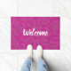 Welkom deurmat in roze gepixeld mozaïek ontwerp. Heet roze, fuchsia mozaïek tegels patroondeurmat.