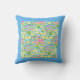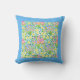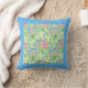 Een zeer Pillow of Cushion met een patroon van roze, gele en blauwe primrozen met een brede blauwe rand van de turqoise, van een handbeschilderd ontwerp van de waterverf door Judy Adamson.