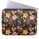 Stijlvolle herfst-gekleurde, oranje, gele en roze waterverf bloemen en bladeren op zwarte laptophoes, aangepast met uw monogram/initiaal.