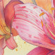 Levendige handbedrukte bloemenmotieven met een prachtige reeks roze en gele dagleliebloemen, die een gevoel van waterverf en frisheid oproepen met zijn levendige tinten en organische motieven.