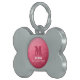 Roze geometrisch meshpatroon Monogram en telefoonnummer Pet ID-tag. Personaliseer Monogram met de beginletter en naam van uw hond en telefoonnummer. Cool Pet-benodigdheden met verloop van geometrisch meshpatroon driehoeken ombre. Driehoek geometrisch mesh met licht donkergrijze ombre verloop.