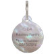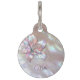 Holografische metallic bloem op een parelmoer achtergrond. Pas het aan met de naam, jouw naam, adres en telefoonnummer van uw huisdier.