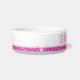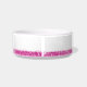 Heldere roze geprinte glitterstripe met confetti stofsproinkles en aangepaste katten- of hondennaam op een witte keramische kat- of hondenvoer en waterkom. Geef een gepersonaliseerde tekst op die je wilt voor een gaffe, dunne vogel- of waterkom. Bekijk ons collectie om bowls te coördineren en een set te krijgen!