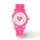Dit schattige en stijlvolle horloge heeft een licht roze thema. De pols zijn roze glitter met roze glitter roman-getallen rond het gezicht van het horloge en een hart in het midden.
