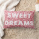 Dit moderne ontwerp heeft een roze glitterachtergrond met de tekst "Sweet Dreams" #bedroom #bedroomdecor #girly #homeaccents #home #decor #homedecor #interiors #kussens #throwpillows #cushions #festive