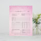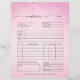 Stuur stijlvolle verkoopbonnen met deze roze glitter factuur sjabloon. Beschikt over aangepaste logo-plaatsing, roze scriptkoppen en ruimte voor clientbestellingen of ontvangen betalingen. Ideaal voor vrouwelijke kleine bedrijven, van bakkerijen tot glamoureuze boetieks. Een professionele maar girly touch voor uw kantoor-briefpapier.