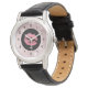 Persoonlijk horloge met een achtergrond samengesteld uit een modern trendy roos gouden tropische bladeren patroon. De gelaagde over bovenkant is een zwarte cirkel, de binnenkant zijn roze lichterijlippen en uw initialen of naam.