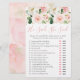 Deze elegante He Said She Said spelkaarten zijn een leuke Bruiloftfeest activiteit. Geef ze gewoon rond tijdens het Bruidsfeest waar gasten lol zullen hebben met het raden wie elke uitspraak heeft gedaan. Je kunt zelfs de zinnen aanpassen! Het ontwerp bevat prachtige roze waterverf bloemen met nep gouden glitters. Passende roze kalligrafie en houtskoolgrijze tekst complementeren het mooie bloemontwerp.