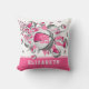 Het basketbalkussen van dit coole meisje heeft een "explosie" van verschillende afmetingen roze, wit en grijs basketballen en grijze en roze stervormen, waarop je haar jersey-nummer kunt personaliseren - de roze ster heeft een klein patroon van witte stippen - pas de naam van de atlete aan op een roze kleurstrook aan de onderkant van het kussen - katz_d_zynes