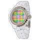 Roze Groen Geel Tartan Plakken Ontwerp Horloge