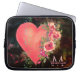 Roze Hart bloemenhoes met monogram laptop Sleeve