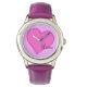 Dit is een schattig meisjeshorloge, met een groot helder roze hart in het midden op een roze en witte gestippelde achtergrond. Voeg eenvoudig haar naam toe voor een persoonlijke touch.
