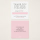 Hartelijk dank voor uw aankoop in een schattig minimalistisch ontwerp met een roze hart, waar de persoon die het pakket heeft voorbereid zijn naam met de hand kan ondertekenen voor een persoonlijke aanraking. Voeg uw contactgegevens toe op de pastelroze aan de andere kant van de dankjewel voor uw bestellingskaart. U kunt ook een kortingscode opschrijven voor de volgende aankoop van uw klanten.