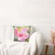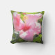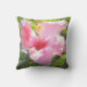 De originele foto van MaeFlowers op dit 16" Sierkussen heeft een roze hibiscusbloem in het ochtendzonlicht tegen een achtergrond van groene bladeren. Een van de bloemblaadjes, nog steeds in de schaduw, heeft regendruppels op het van een vroege ochtenddouche. De tinten van pinks en greens creëer hebben een heerlijke tuinstemming.