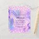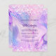 Een meisjesachtige en vrouwelijke Quinceañera uitnodiging. Op de voorkant: een holografische gekleurde achtergrond in paars, roze. Versierd met blozende roze confetti. Personaliseer en voeg een naam en feestdetails toe. De naam is geschreven met een handgeschreven lettertype script, paarse letters.