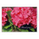 De originele foto van MaeFlowers op dit Wenskaart is een close-up van roze hortensia's en hun grillige randgroene bladeren. De centrale pompom van bloemblaadjes vult bijna het ontwerp, omringd door de groene bladeren en stukjes van andere bloemenpompoms aan elke kant. De tekst in lichtroze in het donkere gebied rechtsonder zegt Dank u!, en dit wordt herhaald aan de binnenkant van de kaart in het zwart. Alle tekst kan worden gewijzigd of verwijderd om aan uw behoeften te voldoen. Bijpassende enveloppe beschikbaar.