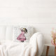 Alice draagt een roze jurk met een zwart-witte hartafstand