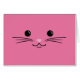 Een schattig roze magenta kleur katteachtig gezicht met een glimlach, whiskers, lichtroze neus en glanzende zwarte ogen. Een origineel digitaal kunstontwerp.
