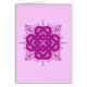 Roze getextureerd celtic knot "quadhart"-ontwerp met een hartschuifpatroon en een naaldsterachtergrond.