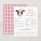 Leuke koe thema baby shower baby voorspellingen en advies kaart met illustraties van baby koe met een roze bloem. Perfect spel om te spelen tijdens de douche en zal zeker een geweldige aandenken zijn! De kaart vraagt gasten om te voorspellen hoe de baby eruit zou zien.