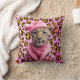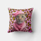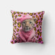 Dit grote kattenkussen heeft een luipaard gekleed in roze, met luipaard print achtergrond, zeer kleurrijk en zeer schattig!