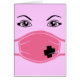 Deze t-shirts en andere artikelen zijn voorzien van een gestileerde afbeelding van een gezicht met een roze medisch masker.