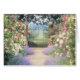 Roze, met Roos uitgelijnd pad naar poort, onderbeplant met vruchtbloemen. Geweldig roze bloemen.