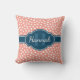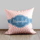 Stijlvol, trendy lichtroze en wit puntpatroon op de achtergrond, voorzien van een donkerblauw etiket met een aanpasbare naam en sjabloon van het monogram.