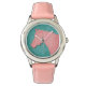 Pink Horse on Turquoise Watch heeft een roze paard silhouet. De achtergrond is een turkoois. Ontwerp gemaakt door Graphic Divine.
