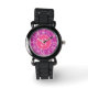Roze, paarse damast grafisch monogram meisjes horl horloge