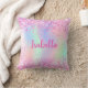 Een trendy regenboogkleurige achtergrond met eenhoorn- en regenboogpastelkleuren in blozend roze, paarse mintgroen. Versierd met confetti. Personaliseer en voeg een naam toe, geschreven met een modern handgeschreven stijlscript. Hete roze gekleurde letters.