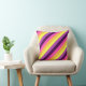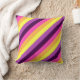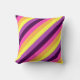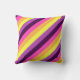 Een 16" x 16" gooi kussen met een schattig, kleurrijk patroonontwerp van diagonale strepen in pruim paarse, lavendel, citroengeel, meloen sinaasappel en heldere magenta.