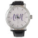 Roze Paarse Typografie Monogram Girly Modern Horloge