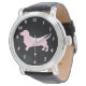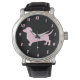 Een geïnspireerd roze en wit roze geruite Dachshund polshorloge voor haar.